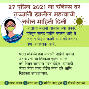 27 एप्रिल 2021 ला चॅनेल्स वर तज्ज्ञांनी खलील महत्वाची नवीन माहिती दिली